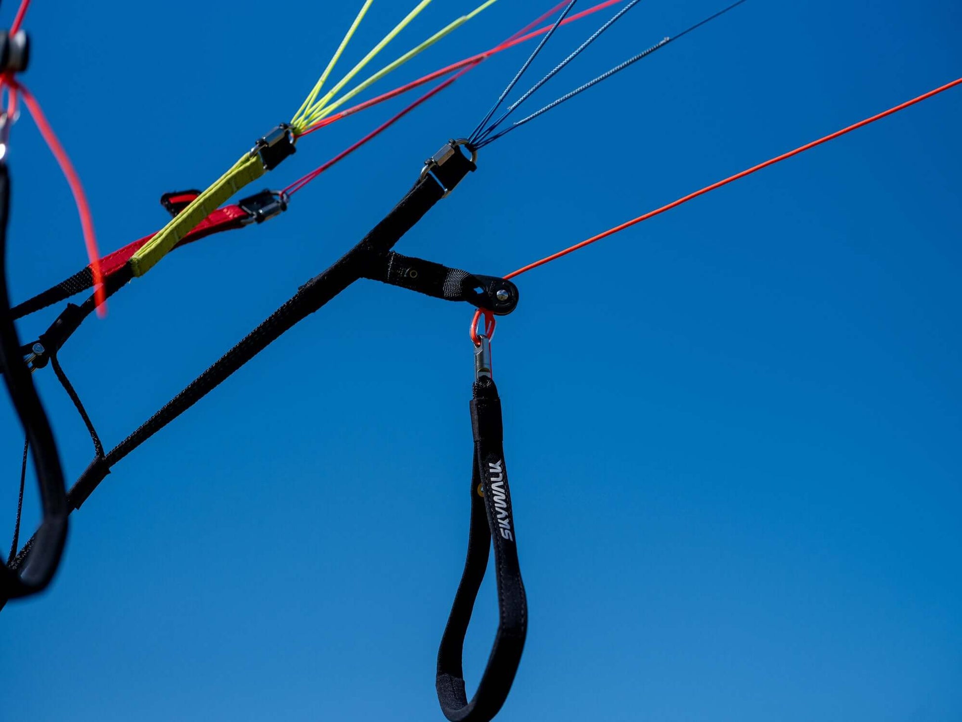Einfaches Bodentraining & Startverhalten: Farbe ‑codierte Nähte am Smart Link System sorgen dafür, dass sich die Tragegurte intuitiv einhängen lassen und Verdrehungen leicht erkannt werden.